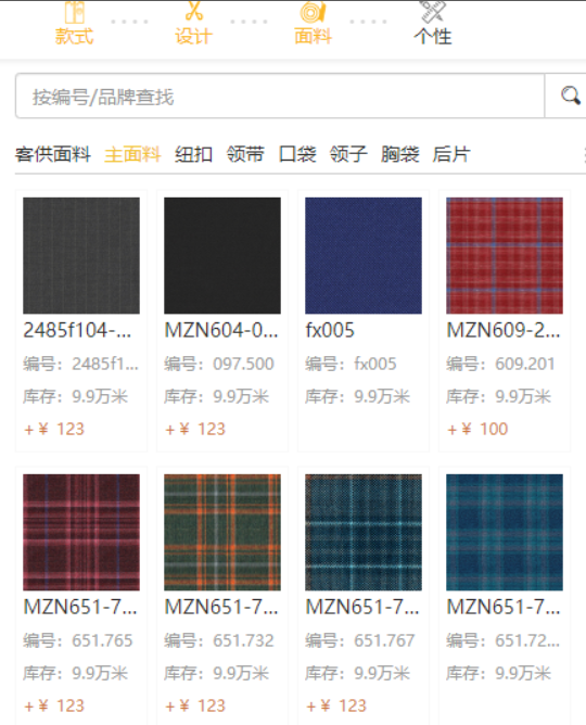 選擇不同面料,可以渲染出不同的成衣效果,不同面料價格不同。